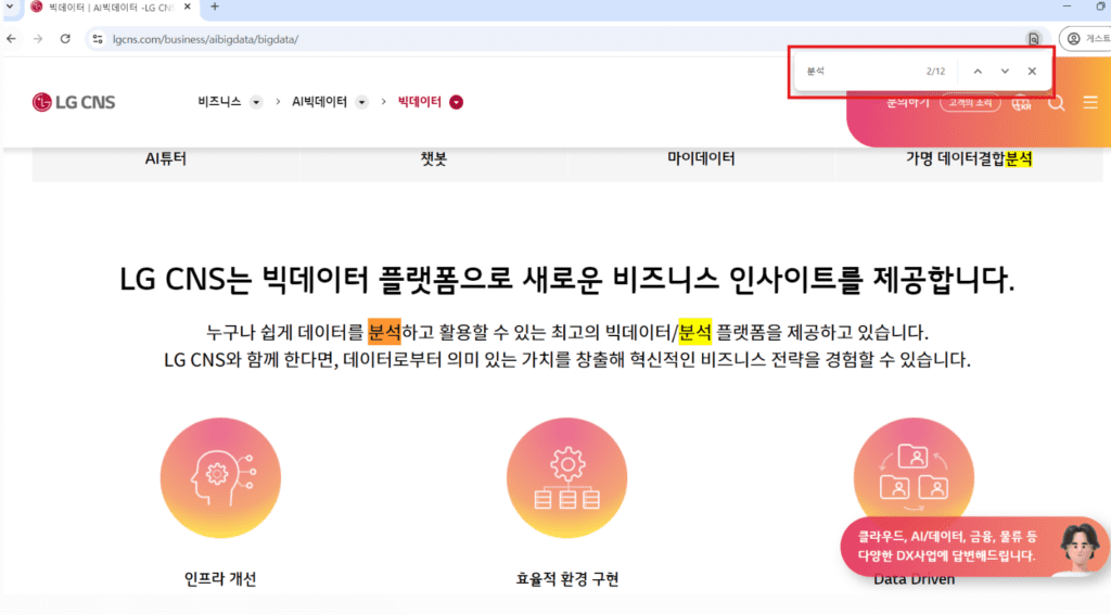 각 사이트에 들어가서 '분석'이라는 키워드가 얼마나 언급되었는지 간단하게 Ctrl+ F 로 찾아보면