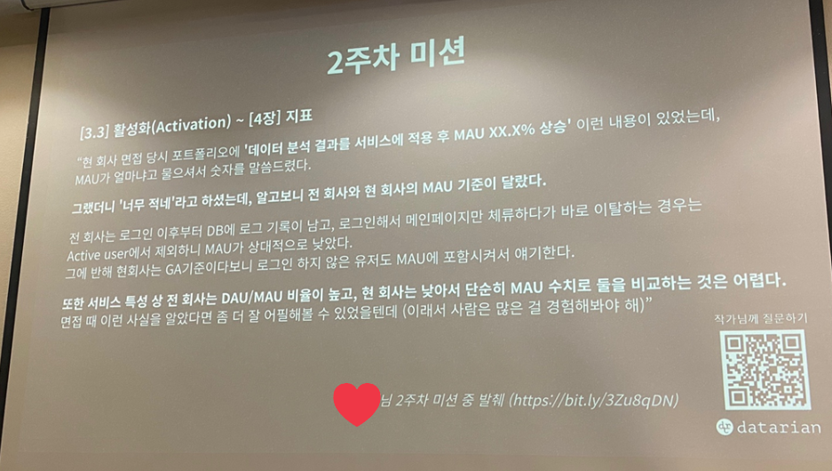 2. 데이터리안 측에서 준비해주신 공식 북토크 시간