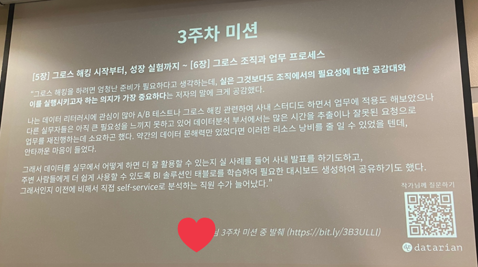 또, 이렇게 좋은 북 토크쇼와 챌린지를 진행해주신 데이터리안 분들께 진심으로 감사드립니다 :)