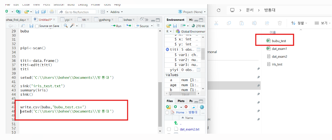 방통대 경로에 있던 bubu_test csv 파일을 new_bubu 변수에 넣고