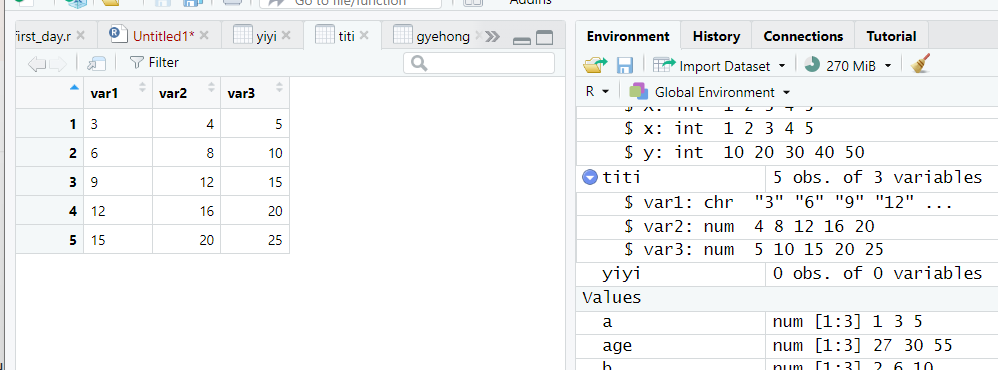 titi 가 데이터 프레임이란 구조라는 걸 인식해준 후,