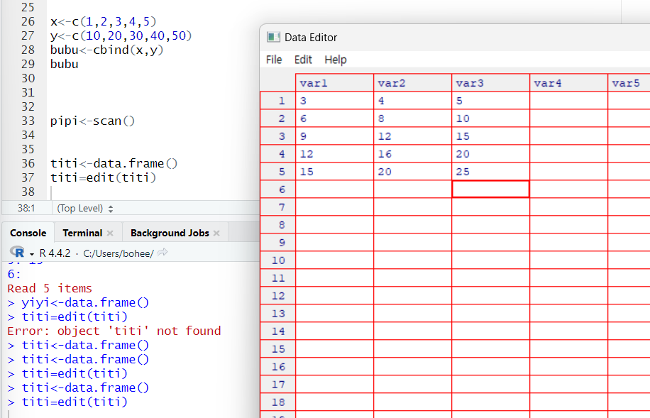 그러면 원래는 x<-c(1,2,3,4,5) y<-c(10,20,30,40,50) 인데