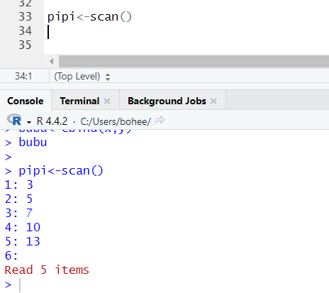ls() 함수를이용하면 지금까지 만들어진 객체를 모두 확인 가능