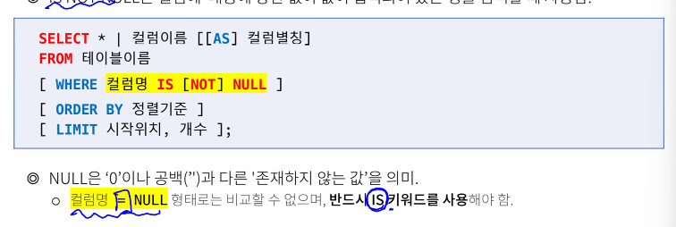 NULL 은 0, 공백을 의미하지 않고 아예 존재하지 않음을 의미함