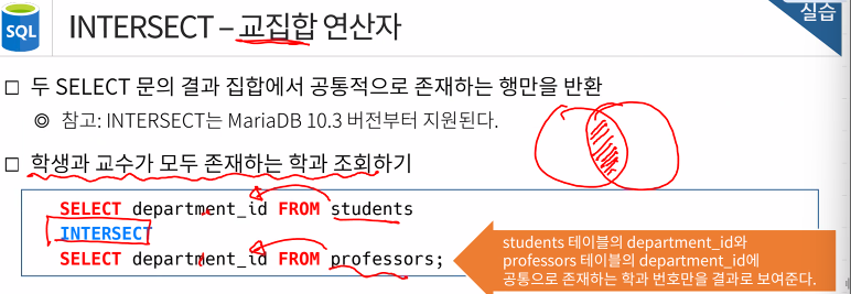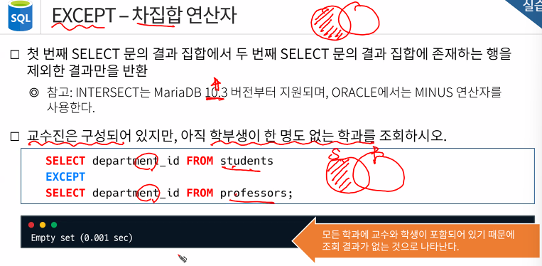 WHERE ,UNION, INTERSECT ,EXCEPT, 를 이해