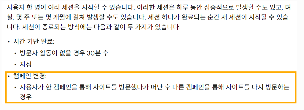 GA4 로 전환하면서 큰 변화 중 하나는 유입 캠페인(소스 매체) 이 바뀌어도 세션이 새로 생성되지 않는 다는 점 입니다.