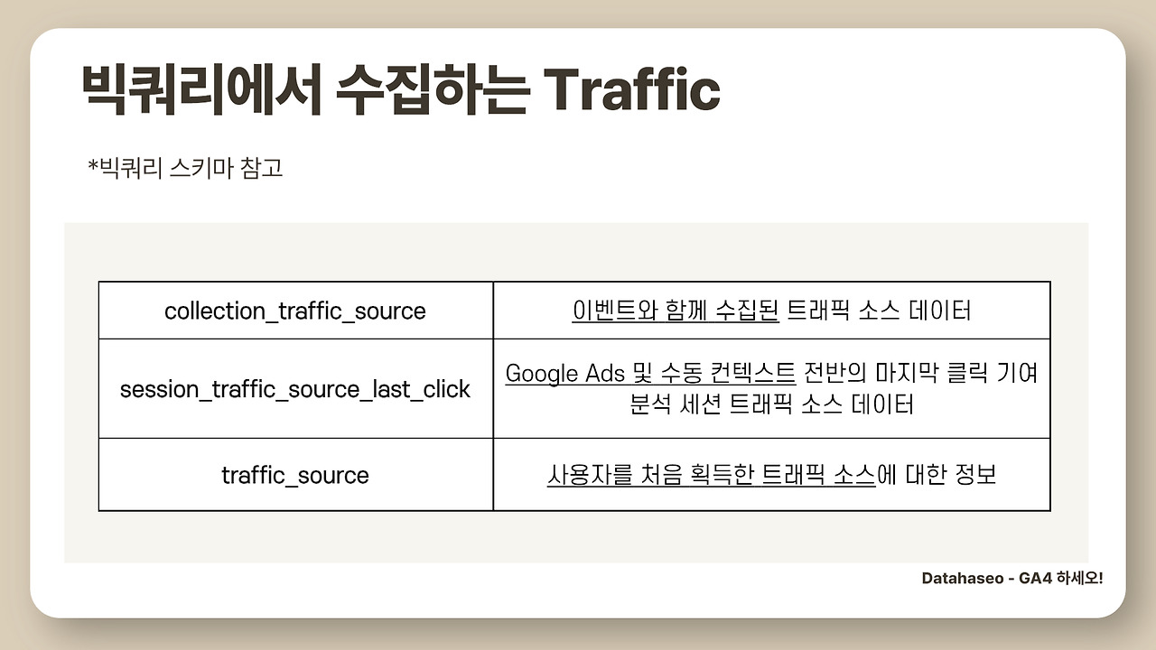 collection_traffic_source 는 이벤트 발생 시점의 소스 데이터
