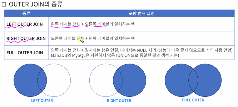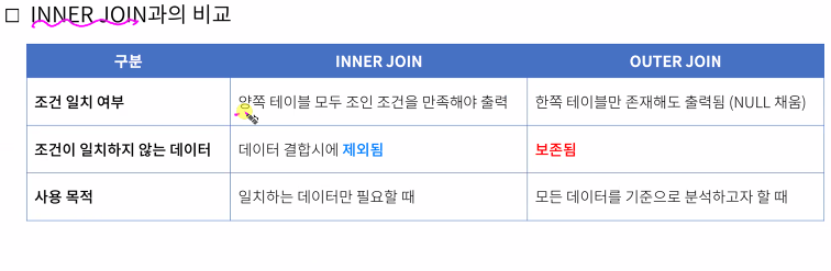 -기준 테이블의 모든 행을 결과에 포함시키는 방식