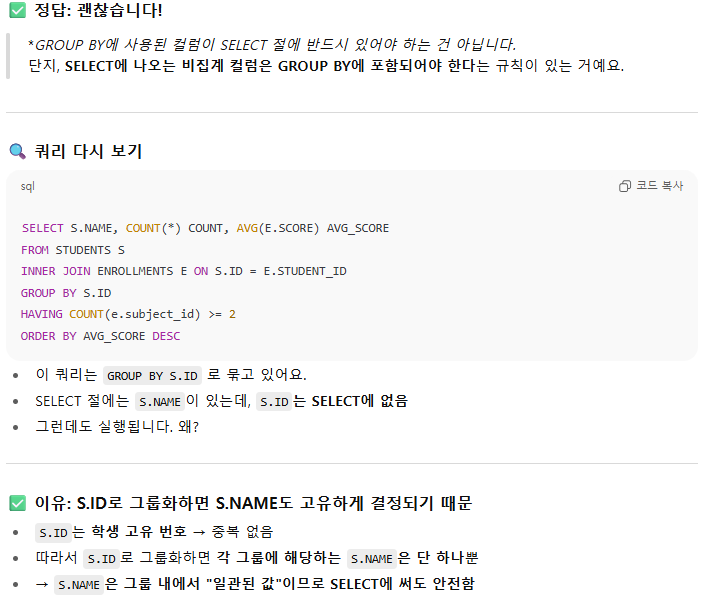 *S.NAME 으로 GROUP BY 했는데, 동명 이인이 있어 다른 결과가 나왔음