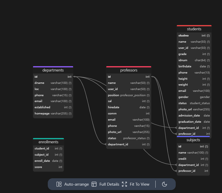 department_id int [not null, note:"소속 학과번호",ref: > departments.id]