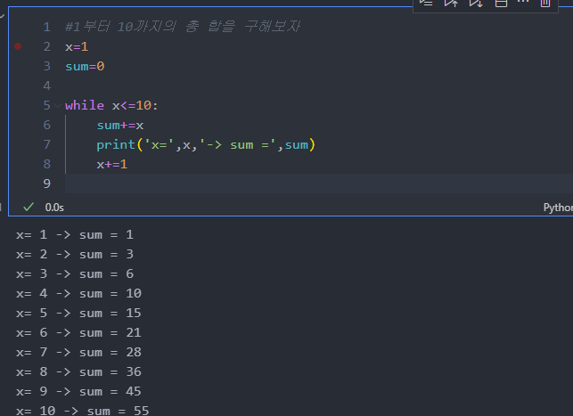 x+=1 #증감식 까먹지 않고 꼭 써주기