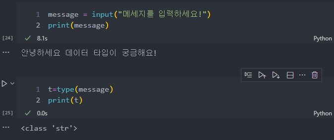 print() 안에 type() 함수를 써서 데이터 형식을 확인할 수 있다