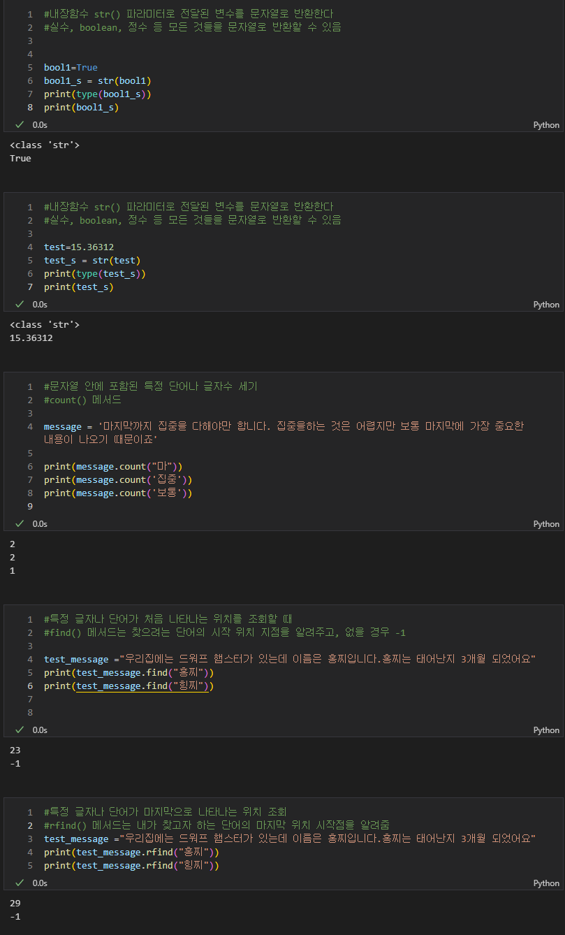 #내장함수 str() 파라미터로 전달된 변수를 문자열로 반환한다