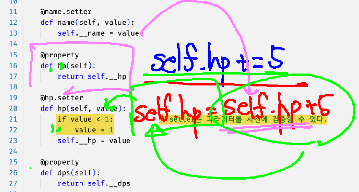 self.name 이 변수가 아니라 앞에 나온 매서드들을 통해서 값을 리턴받는 것