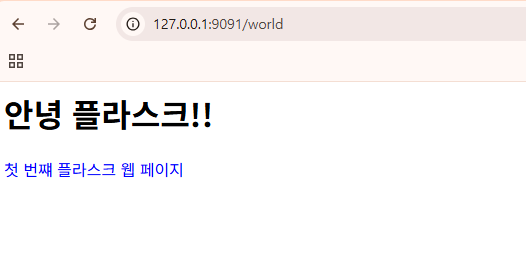 <p style = 'color: blue'> 첫 번쨰 플라스크 웹 페이지 </p>