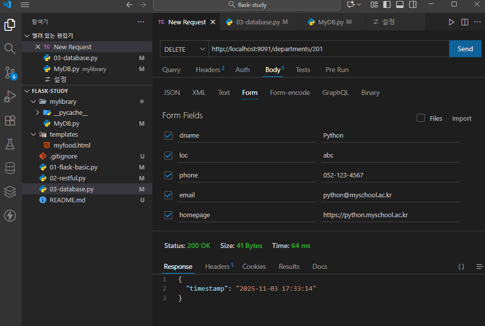 MyDB.disconnect() # 데이터베이스 접속 해제