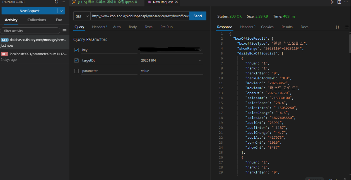 [아이티윌 빅데이터 52기] LAB 12 | 웹 데이터 수집하기 | 영화 진흥 위원회 API | 박스 오피스 데이터 수집