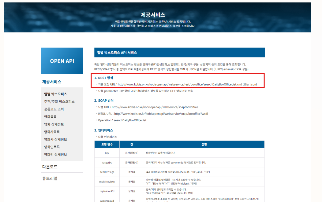 1. 영화 진흥 위원해 Open api 사이트 접속