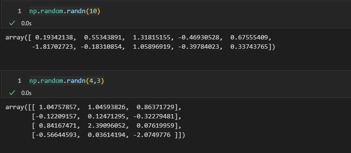 rand 뒤에 n 이 붙어있는 메서드를 사용하면 표준 정규 분포를 따르는 형태로 숫자가 랜덤 부여된다