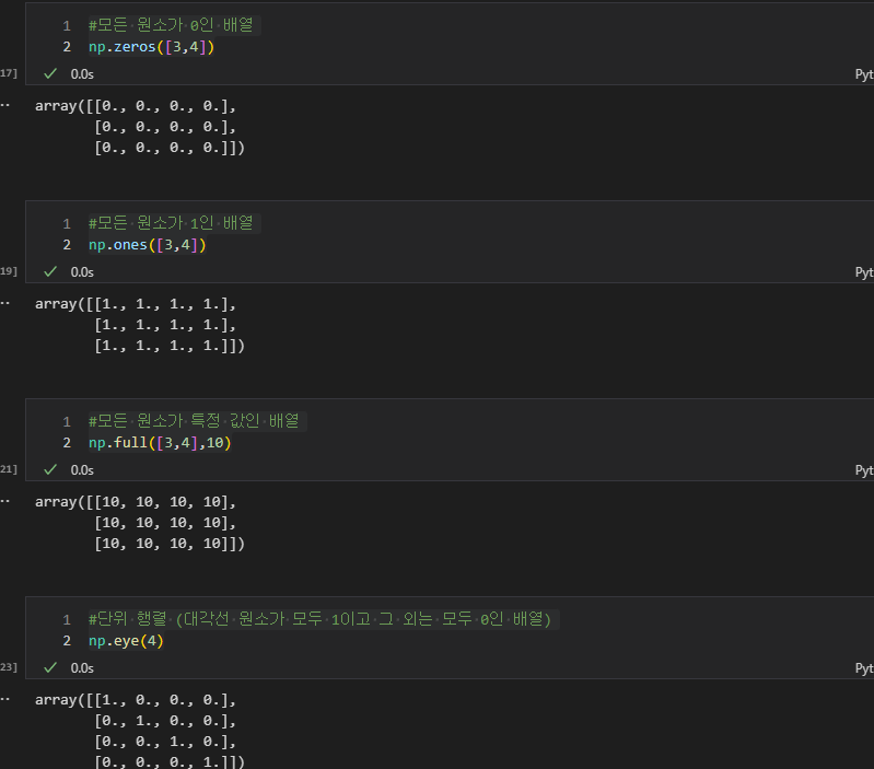 #단위 행렬 (대각선 원소가 모두 1이고 그 외는 모두 0인 배열)