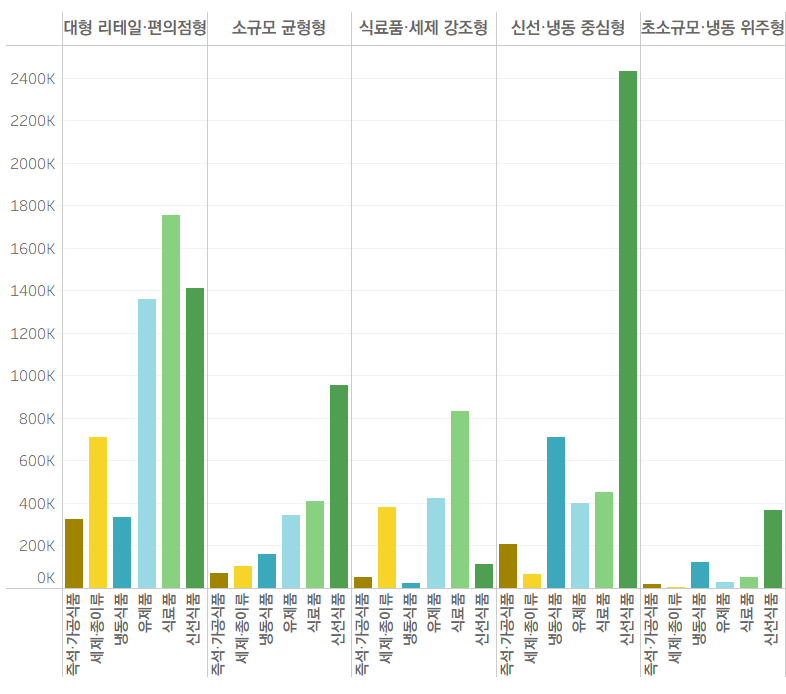 - ① 소매 유형 (Retail)의 결정적 신호: 세제·종이류, 식료품, 유제품