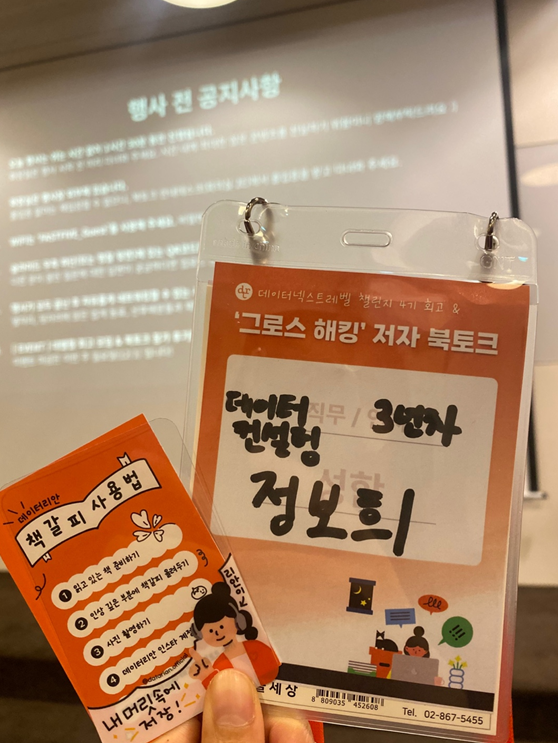 회사에서 같이 이번 챌린지랑 북토크쇼를 신청했던 개발자 분은 데이터리안 수업을 수강한 적이 없어서 걱정하셨는데