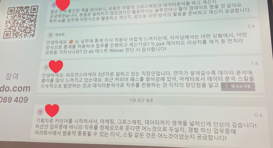 저자님께 직접 물어볼 수 있는 Q&A 시간을 가지게 되었다.
