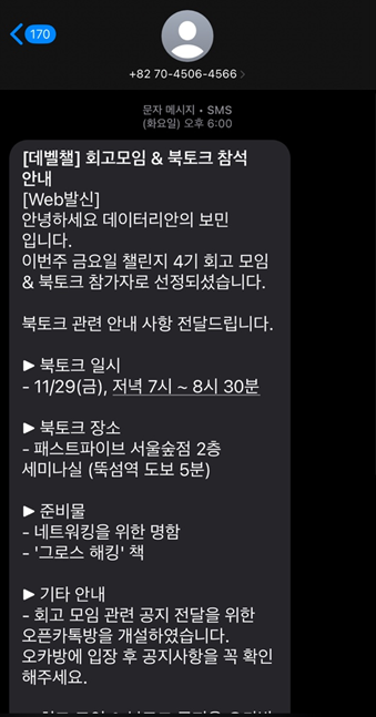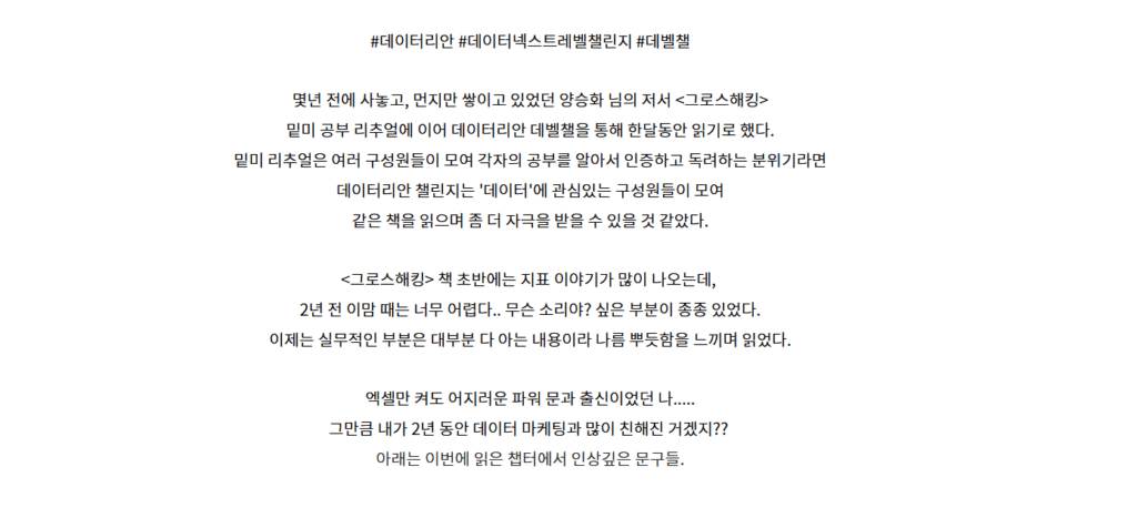 또, 이렇게 좋은 북 토크쇼와 챌린지를 진행해주신 데이터리안 분들께 진심으로 감사드립니다 :)