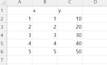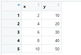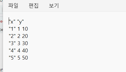 그러면 원래는 x<-c(1,2,3,4,5) y<-c(10,20,30,40,50) 인데