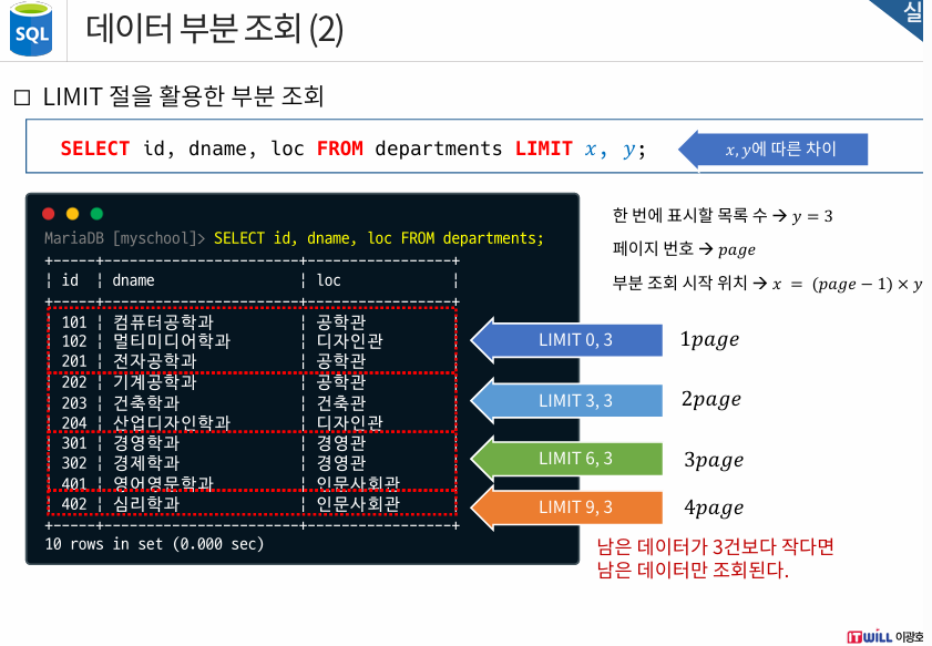몇 번쨰부터, 몇 개를 가져올지 LIMIT X,Y 로 지정해야함