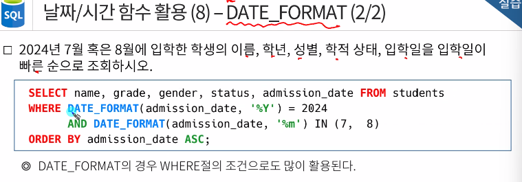 SELECT NAME, BIRTHDATE , DATE_FORMAT(BIRTHDATE, '%m월 %d일') FROM STUDENTS;