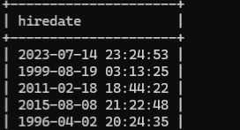 SELECT NAME,DATE(HIREDATE), TIME(HIREDATE) FROM PROFESSORS WHERE DEPARTMENT_ID=202;