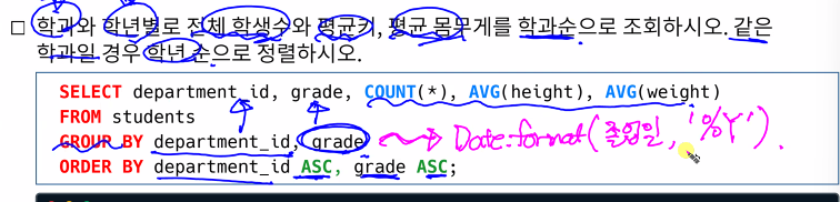 DATE_FORMAT 함수는 GROUP BY 에서도 쓸 수 있고, 만약 DATE_FORMAT(졸업일 ,'%Y') 로 쓰면,