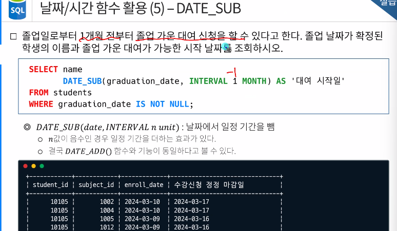 date_sub(graduation_date, interval 1 month) as '졸업가운 대여 가능일'
