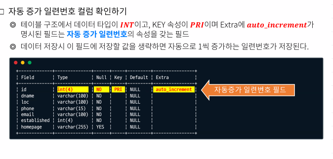-기본키 값의 일련번호가 자동으로 증가하는 조건을 걸어줄 수 있음 (AUTO_INCREMENT)