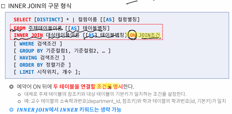 -ON 뒤에 두 테이블을 연결할 조건 명시