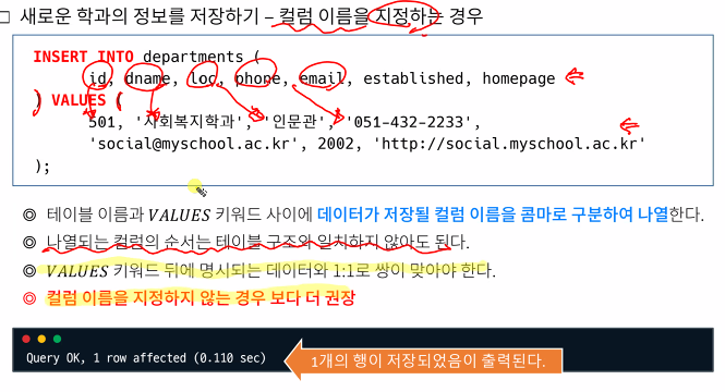 -나열되는 컬럼 순서는 테이블 구조와 일치하지 않아도 괜찮음