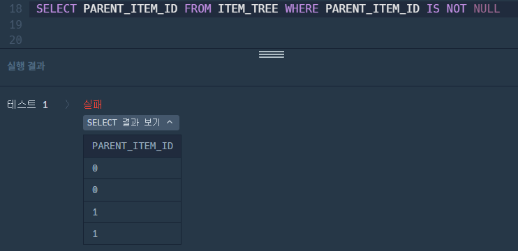 즉 PARENT_ITEM_ID 에 ID 가 없거나 NULL 이라면 아이템을 업그레이드 할 수 없었던 것