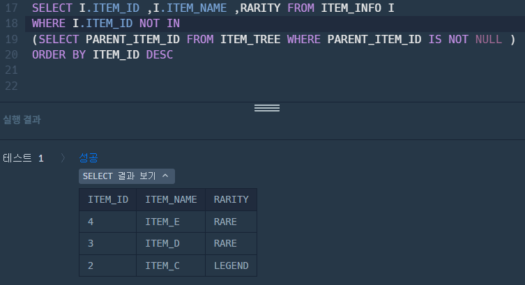 (2) 필터링 할 때 ITEM_ID 에서 업그레이드 할 수 있던 ID 들의 여집합을 구한다 즉, NOT IN
