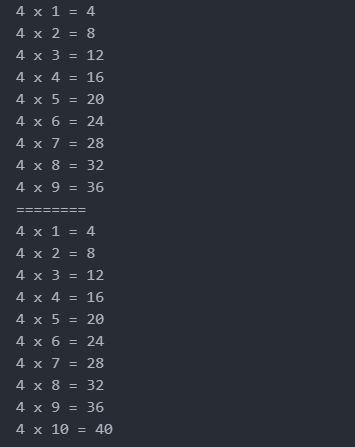 #주의: while 문에서 증감식과 추출결과물 순서가 바뀌면 다음과 같이 나올 수 있음