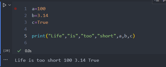 print() 함수는 여러개의 값을 전달할 떄 공백으로 구분해서 한번에 출력즉, 띄어쓰기를 하지 않아도 띄어쓰기 처리가 되어 출력된다