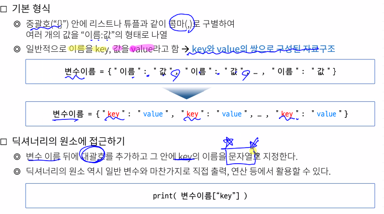 #딕셔너리에서 특정 원소로 접근할 때는 문자열로 작성해줘야한다