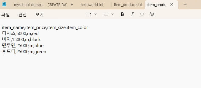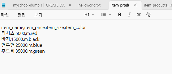 {"item_name":"티셔츠","item_price":5000,"item_size":"m","item_color":"red"},