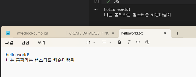 파일을 쓴 것으로는 출력값이 없다.