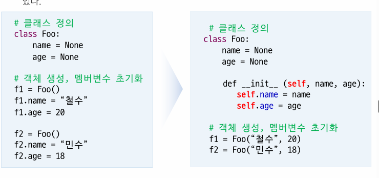 -값을 리턴하는 것은 아니고, 생성자의 이름은 __inti__ 으로 (언더바 두번씩) 약속되어 있음