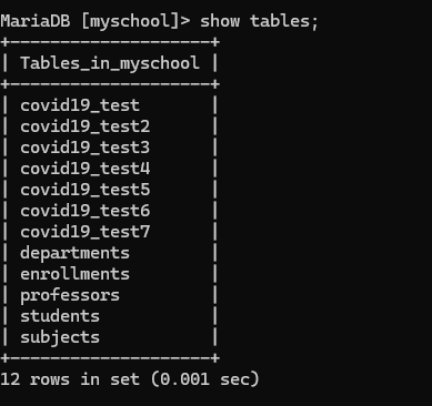 STEP 1. 마리아 DB 의 myschool 데이터 베이스에 접속한다