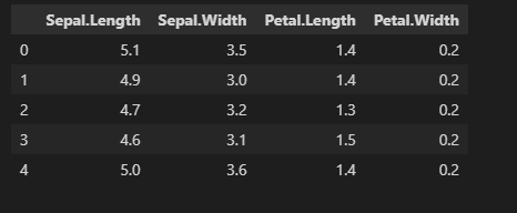 - 군집 분석은 종속 변수가 존재하지 않으므로, 종속변수를 제외하여 데이터 추출