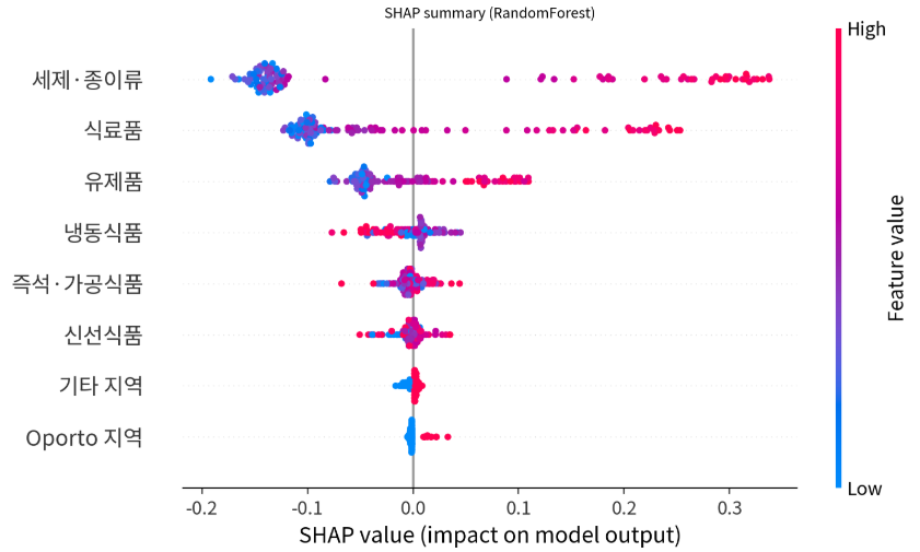 - 데이터 기반 의사결정: 직관이 아닌 SHAP 지표와 실제 수치에 기반하여 어떤 품목이 채널 성격에 영향을 주는지 설명함으로써 조직 내 의사결정의 신뢰도를 높였습니다.