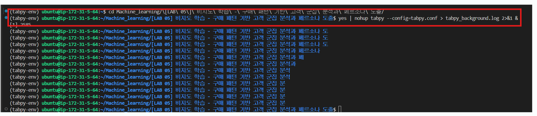 - 명령어: nohup tabpy &