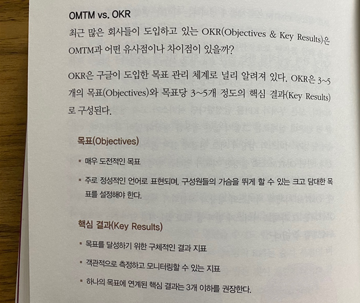 성장을 목표로 하는 OMTM 이 사내에서 좀 더 활발하게 논의되면 좋겠다는 바램이 많이 들었던 구절이라 인상 깊었다.